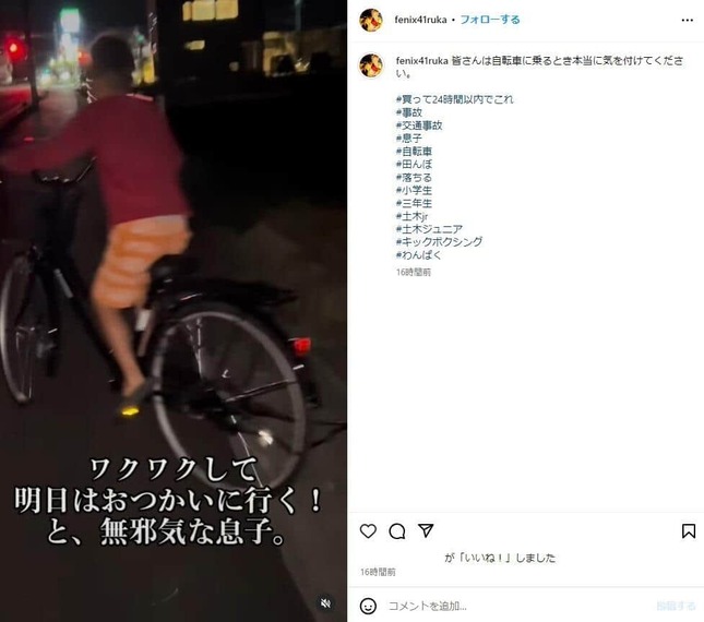 坂本さんは16日に更新したインスタグラムでも、「皆さんは自転車に乗るとき本当に気を付けてください」と投稿している。併せて公開した動画では、自転車を欲しがる息子と何軒も店を回ったと明かし、本人の希望でいわゆる「ママチャリ」を選んだことを伝えた。息子とは、「気をつけて乗るのを約束」したという。