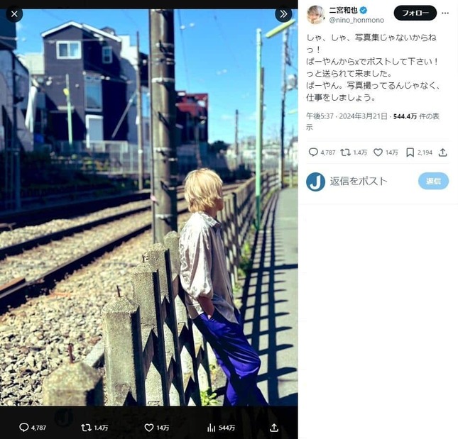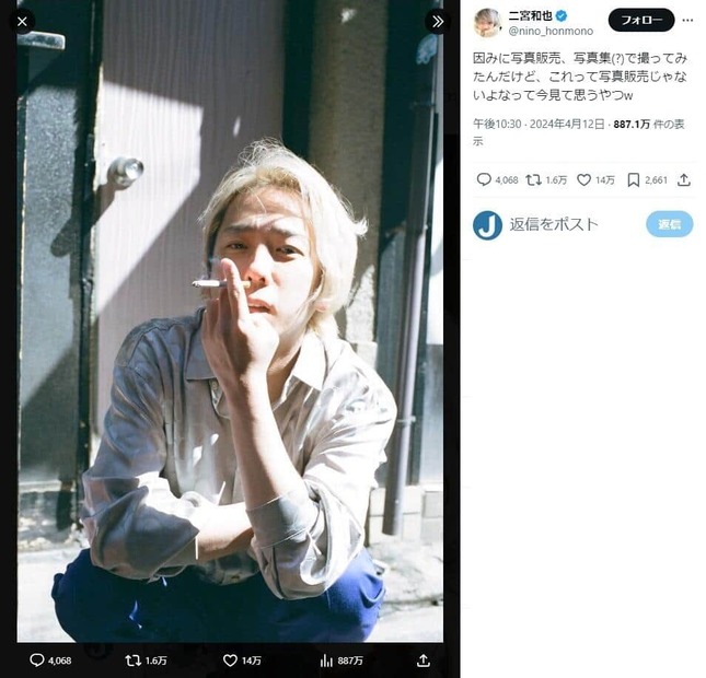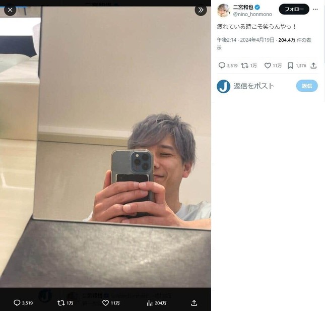— 二宮和也 (@nino_honmono) April 19, 2024