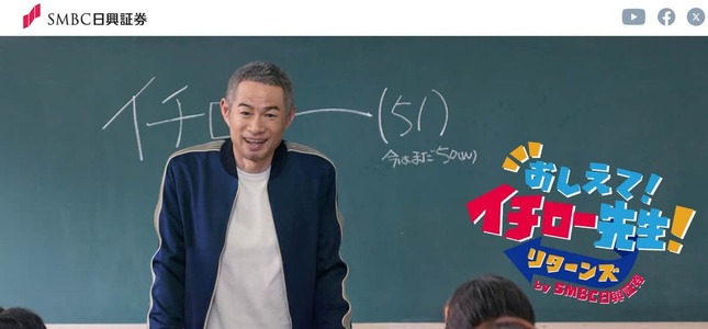 シアトル・マリナーズの会長付特別補佐兼インストラクターのイチローさん(50)が、SMBC日興証券が2024年4月15日にYouTubeで公開した「おしえて!イチロー先生!リターンズ」に出演。先生役となって生徒の悩みや質問に答えた。