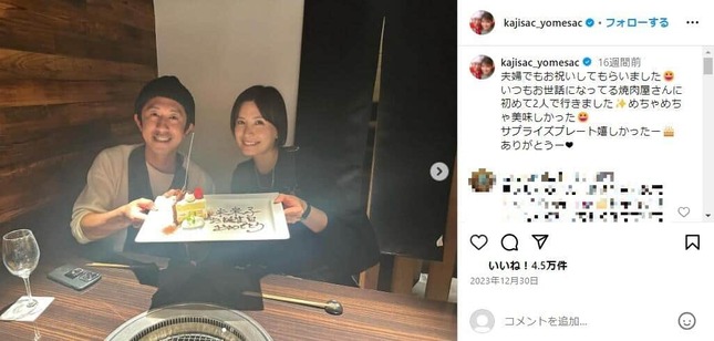 コメント欄には、「貴重なツーショット」「旦那抜きでおふたりのトークが観たいです」などの書き込みが寄せられている。