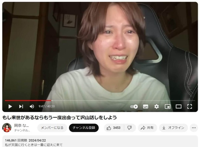 岡奈さんは2024年4月22日、「もし来世があるならもう一度出会って沢山話しをしよう」と題した動画を投稿。動画の概要欄には「私が天国に行くときは一番に迎えに来て」というメッセージが書かれていた。