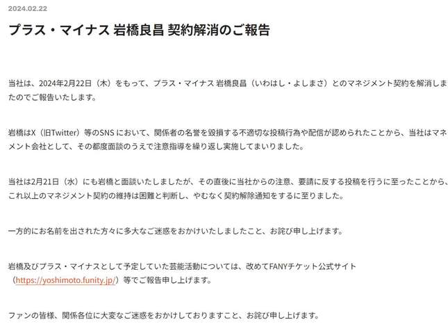 最後に兼光さんは、周囲やSNS上から再結成を望む声が寄せられるとしたうえで、「僕からしたら『ふざけんな!』だ。振り回されすぎだし無責任にも程がある」「こんな身勝手な終わり方は絶対に納得いかないし許せない」と反論。「僕はもう切り替えて前に進んでいる」「大切な家族を守らなければならないのだ」と締めた。