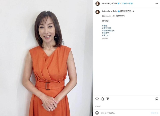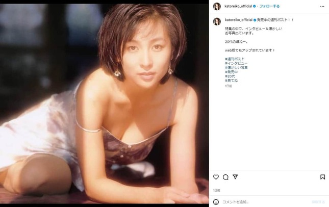 タレントのかとうれいこさん(55)が、グラビアアイドル時代に撮ったセクシーショットをインスタグラムで公開し、反響を呼んでいる。