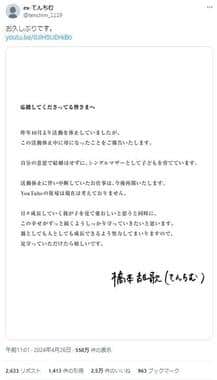 2023年8月に無期限活動休止を発表していたてんちむさんは、2024年4月26日にXとYouTubeを更新し、シングルで出産していたことを告白。YouTubeの動画では、子どもの父親について「過去にお付き合いしたことのある方や、YouTuberの方、裏方の仕事関係者は無関係です。不倫でもありません」と語っている。