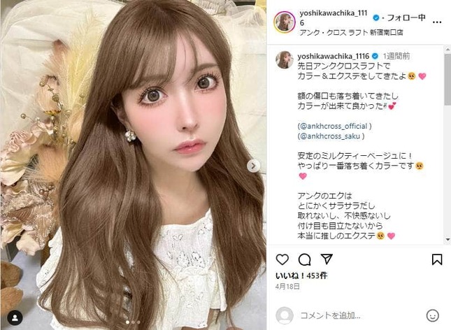 • 吉川ちかさんのインスタグラム(@yoshikawachika_1116)より