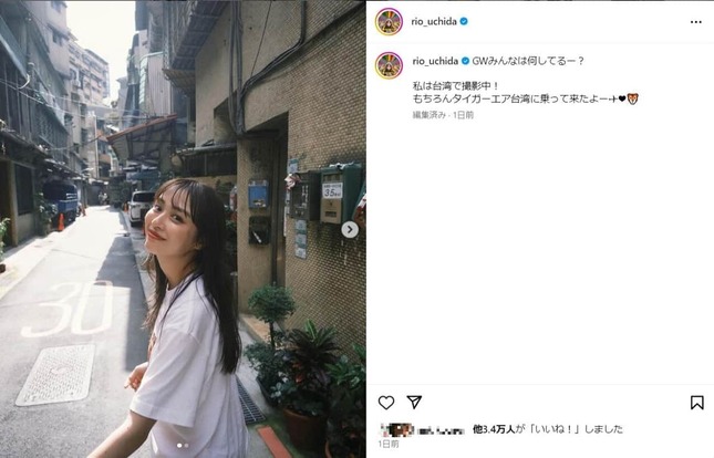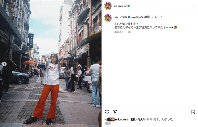YouTuber・ヒカルさんと交際が報じられた俳優・内田理央さんが2024年4月28日にインスタグラムを更新し、台湾で撮影中であることを明かした。