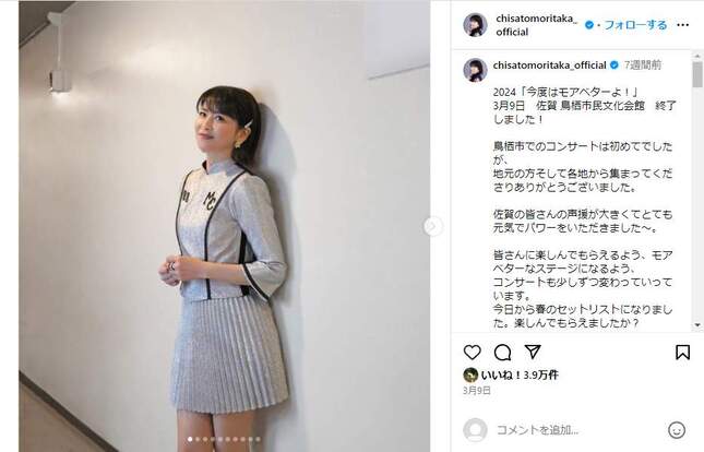 森高千里さんのインスタグラム(@chisatomoritaka_official)より