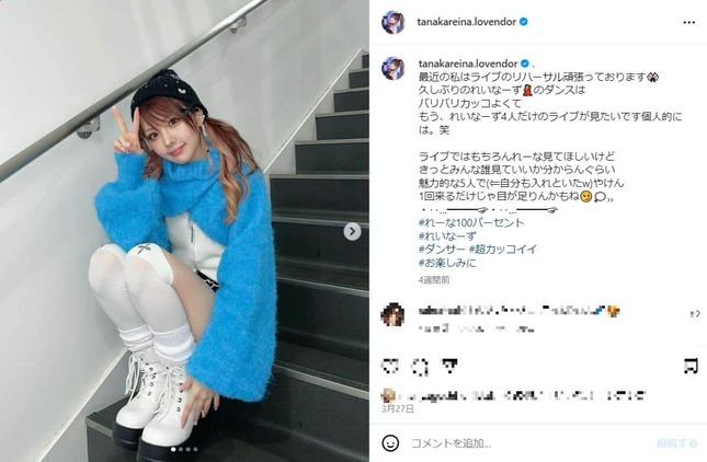実際の投稿(田中さんのインスタグラム(@tanakareina.lovendor)より)