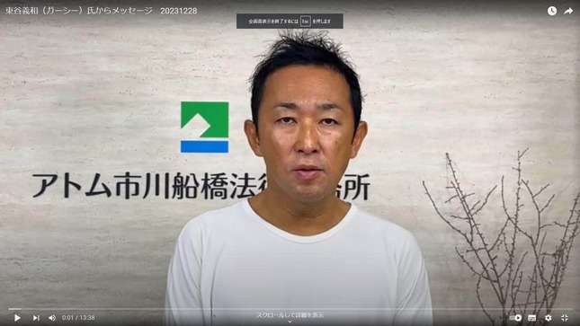 23年12月には東谷氏の弁護人を務めた高橋裕樹弁護士によるYouTubeチャンネル「弁護士高橋裕樹のリーガルチェックちゃんねる」に事前収録の動画で出演し、これまでの行動を謝罪。被害者の2次被害を防ぐためのメッセージとして「被害者や被害者家族の方々のことをこれ以上拡散し世の中に広めたりだとか、このまま誹謗中傷を続けることはやめてください」などと訴えていた。