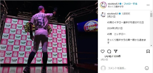 ニッチローさんのインスタグラム(@nicchiro5.1)より