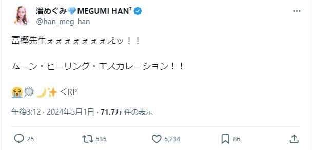 また、アニメ「HUNTER×HUNTER」でゴン=フリークス役を務める声優の潘めぐみさんが、1日にXで冨樫さんの投稿をリポストし、「冨樫先生ぇぇぇぇぇぇぇえッ!!ムーン・ヒーリング・エスカレーション!!」とコメント。