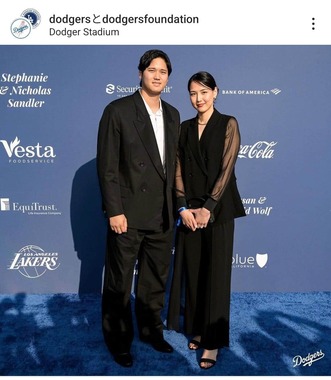 大谷選手・真美子さん夫妻がそろって顔を見せたのは、3月に韓国で行われたドジャースの開幕シリーズ以来となる。球団の公式Xとインスタグラムが公開した写真には、ほほ笑む大谷選手と、やや緊張気味の真美子夫人が寄り添って収まっていた。