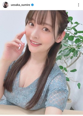 水色のレースの服は、ところどころ素肌が見え、写真によっては胸元がチラリ。この投稿には、「いいね!」が3万4000件以上つき、320件を超えるコメントが寄せられた。「破壊力やばい」「だめ好きすぎる」「セクシーでかわいすぎる」「メロメロ」......。上坂さんのファッションに目を奪われた人が多かったようだ。