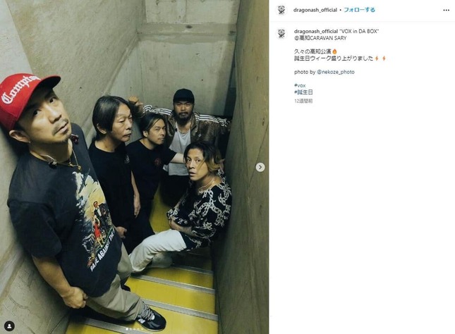 ミクスチャー・ロックバンドの「Dragon Ash」と、ロックバンド「The Ravens」でボーカル・ギターを務める「Kj」こと降谷建志さんが、2024年5月2日にインスタグラムを更新し、2バンドのワンマンライブ活動を一時休止することを発表した。