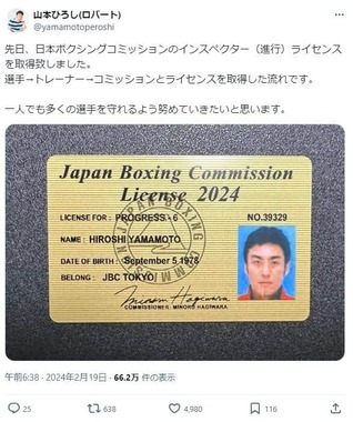 「ロバート山本 芸能人の雰囲気一切出さずに日本ボクシングコミッション(JBC)のインスペクター(試合進行)の仕事をこなす。ボクシング愛を感じる」