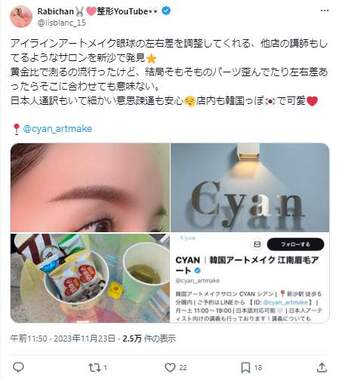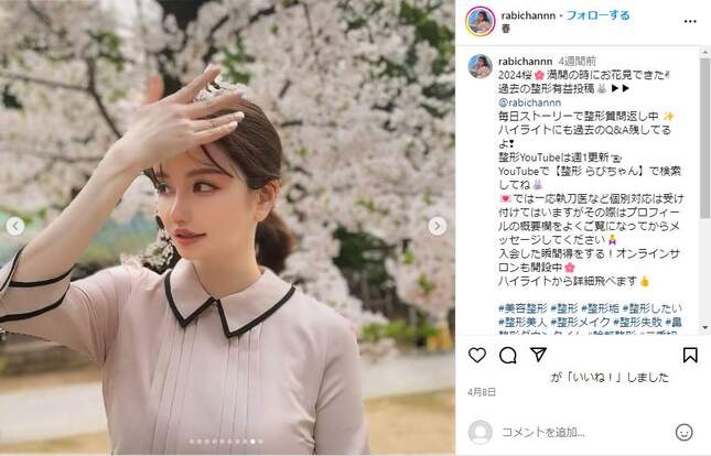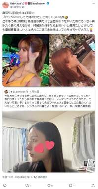 総額4000万円以上を美容整形に費やしたと公言しているYouTuber・Rabichan(らびちゃん)さんが2024年5月3日、「安っぽく見える」女性の特徴をXで挙げたところ、ユーザーからは賛否の声が上がった。