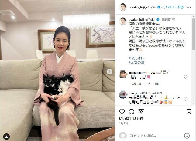 • 藤あや子さんのインスタグラム(@ayako_fuji_official)より