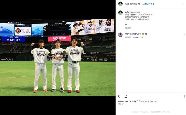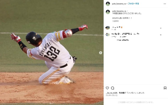 川村友斗選手のインスタグラム(@yuto_kawamu_ra)より