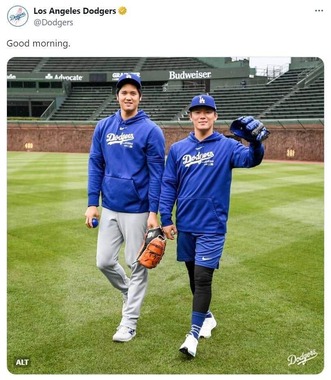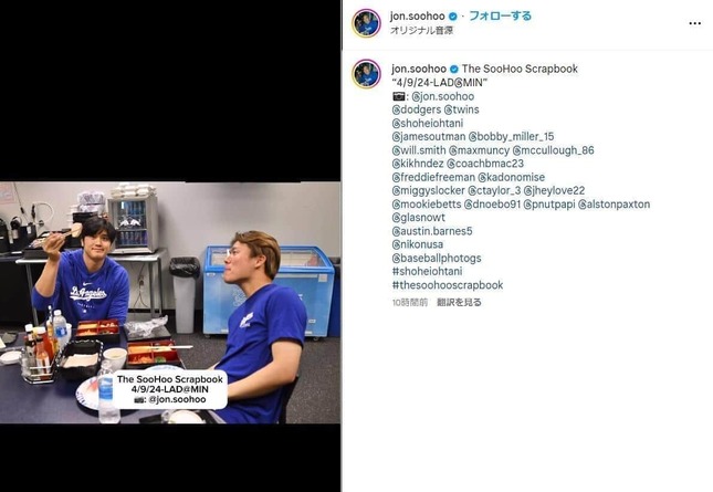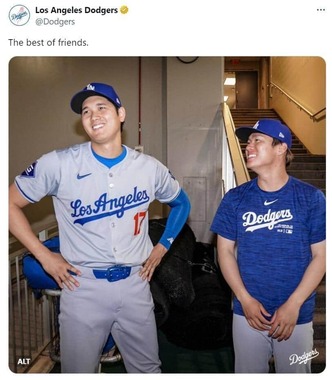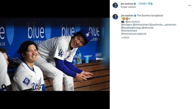 ロサンゼルス・ドジャースの専属カメラマン、ジョン・スーフーさんが、大谷翔平選手と山本由伸投手が笑顔で過ごしている写真をインスタグラムで公開した。
