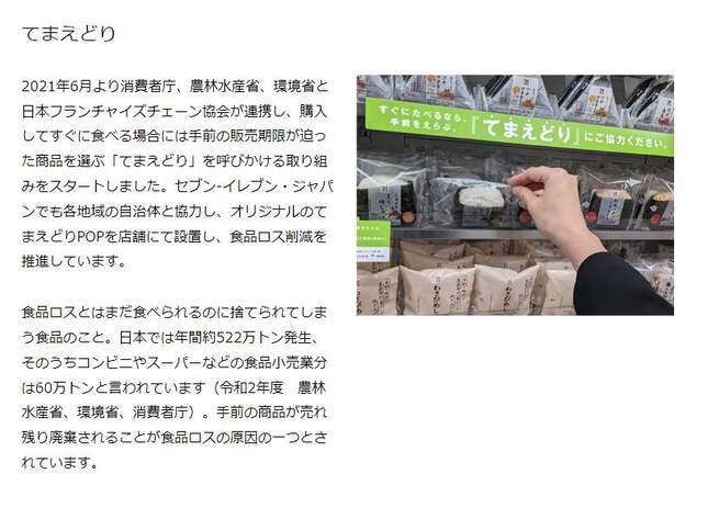 • 食品ロス削減に向けた施策の1つ(セブン-イレブン公式サイトより)