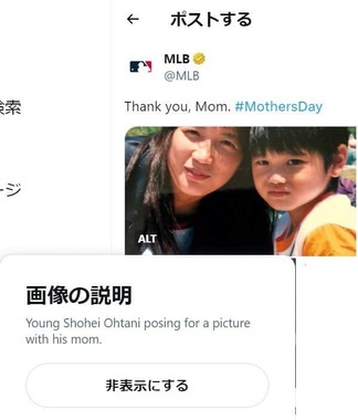 MLB公式Xが母の日の2024年5月12日、ロサンゼルス・ドジャースの大谷翔平選手が子供の頃に撮影された母とのツーショット写真を公開。「小さい大谷さんめちゃ可愛いですね」などのコメントが寄せられた。