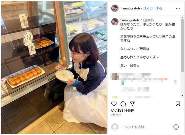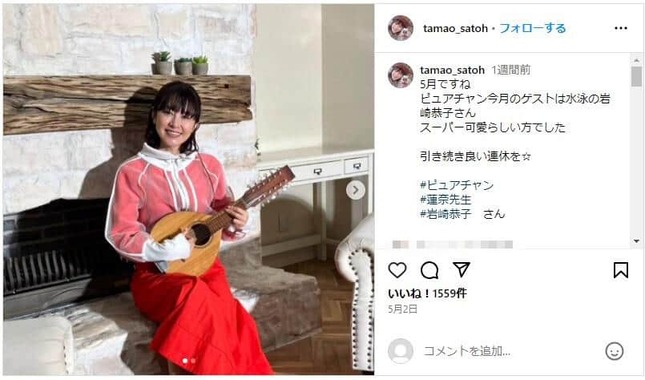 タレントのさとう珠緒さんが2024年5月13日にインスタグラムを更新し、「超力戦隊オーレンジャー」(テレビ朝日系)で共演した俳優の合田雅吏さんと宍戸マサルさんとの3ショット写真を公開した。