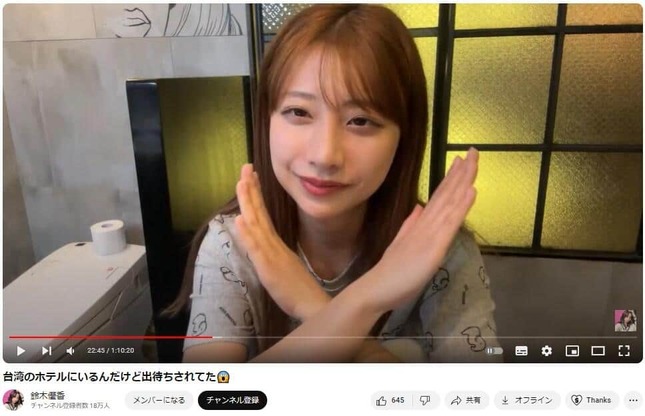 鈴木さんは「台湾のホテルにいるんだけど出待ちされてた」と題した配信を行い、初めての台湾で多数のファンから声をかけられたと喜びつつ、ある日、4~5回もサインや撮影を求めてくる人物がいたとこぼす。相手は中国語を話していた。