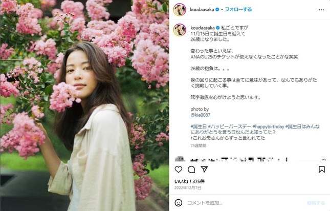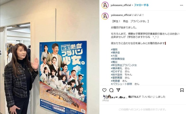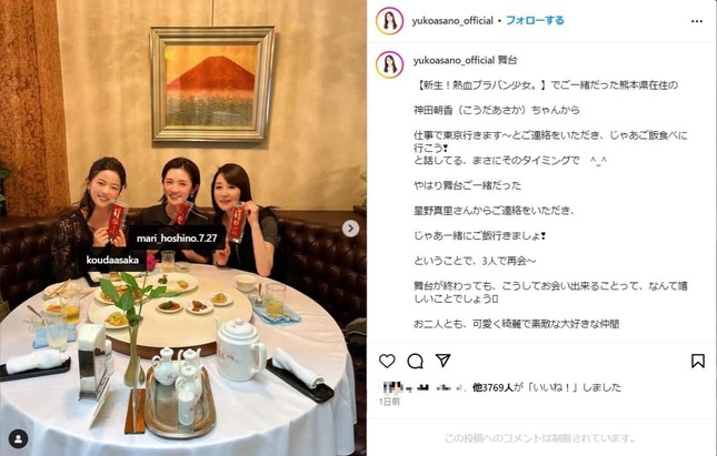 実際の投稿(浅野さんのインスタグラム(@yukoasano_official)より)