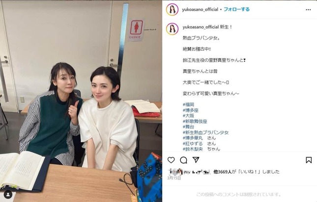 • 浅野ゆう子さんと星野真里さん(浅野さんのインスタグラム(@yukoasano_official)より)