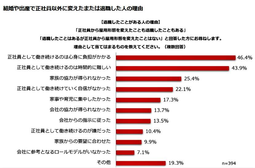 (図表4)結婚や出産を機に正社員を辞めた理由(しゅふJOB総研調べ)