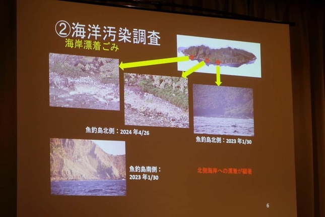 環境調査を委託された東海大の山田吉彦教授によると、魚釣島の海岸には多くのごみが漂着し、ヤギの影響で草木が減少して荒廃が進んでいるという。12年にも尖閣諸島の周辺海域を訪問したことがある山田宏参院議員は、当時よりも自然環境、中国の対応の両面で事態が進行していることを指摘した。