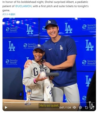 ロサンゼルス・ドジャース公式Xが2024年5月17日、大谷翔平選手が小児患者にサプライズを行った動画を公開。「素敵なサプライズ」「少年これは嬉しいだろ〜な〜」など話題になっている。