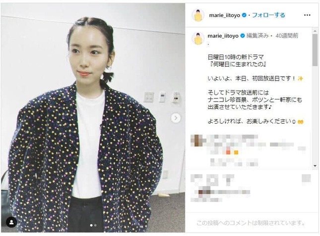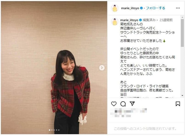 • 飯豊まりえさんのインスタグラム(@marie_iitoyo)より