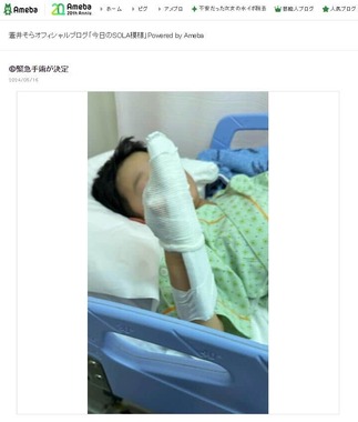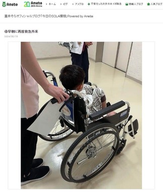 一連のブログエントリーによると、次男は9日から激しい腹痛を訴えはじめた。10日早朝の診察で虫垂炎が判明し、緊急手術が決定。蒼井さんが息子に付き添っている間に家族から連絡が入り、父が亡くなった事実を知らされた。