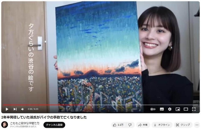 こももさんは4月22日に公開した動画で、約3年間交際し、2年半同棲していた恋人がバイク通勤時にトラックと衝突して1月に亡くなったことを告白した。