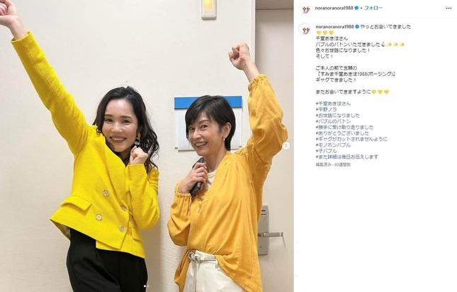 番組内で千堂さんはお笑いタレントの平野ノラさんのモノマネを披露し、その姿にインターネット上では「若い」「綺麗」などの声が上がった。