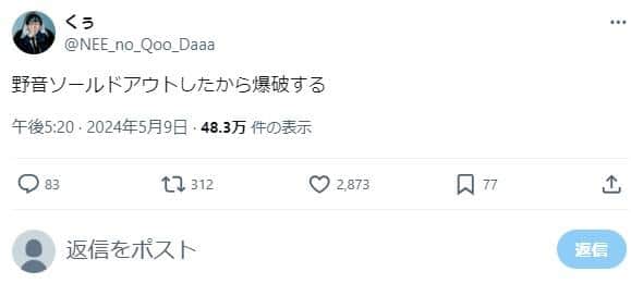 「5月4日にあんな最高のライブを観せてくれてからまだたった2週間だよ もっともっと曲を聴きたかったしライブも観たかった 残念です」