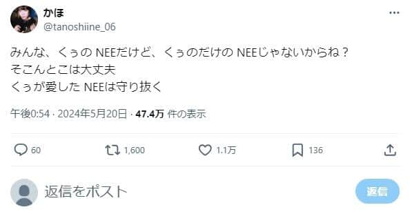 SNSでは、「くぅさんもNEEも愛してるよ これからもずっと大好き 正直ショックすぎて立ち直れないけど そんなときこそNEE聴くよ」「楽しい時も辛い時もNEEの曲に救われてました NEEのおかげで友達もできたし、たくさん背中を押してもらえました これからもずっとくぅさんとNEEのことが大好きです」など、突然の別れに悲しみの声が相次いでいる。