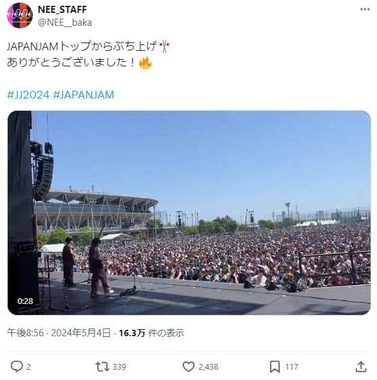 バンドとしては5月4日開催の音楽フェス「JAPAN JAM 2024」に出演したばかりだった。ステージ上では元気そうなパフォーマンスを見せていたことから、驚く声も多い。