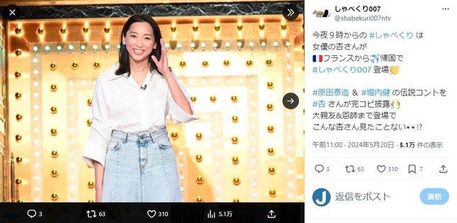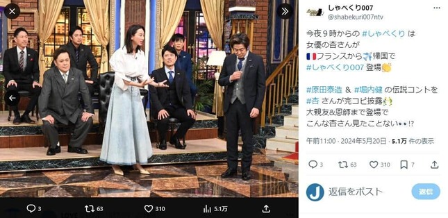 — しゃべくり007 (@shabekuri007ntv) May 18, 2024