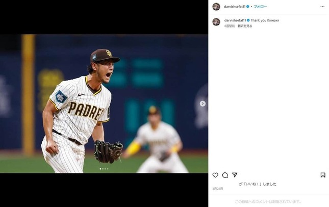 「200勝した晩にラインをして『おめでとう』と。忙しいだろうし、お祝いのラインとかメールがすごく来ているだろうなと思い『返信不要』と書いたら、すぐ返ってきて『わざわざありがとうございます』と。全然いいのに、ダルビッシュ投手らしいなと。ちゃんと人にあいさつもできる。気遣いもできる人だなと改めて。僕が人間的に大好きな人ですね」
