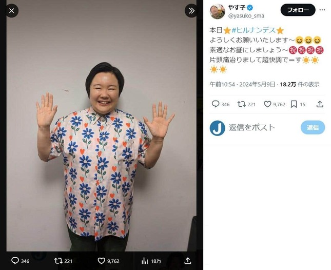 • やす子さんのX(@yasuko_sma)より