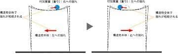すなわち、下の図にもあるように、本体が右に揺れようとする時に心柱が左にゆれてくれれば、全体にかかる力は足元では相殺されることになって低減できる。