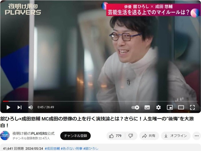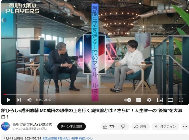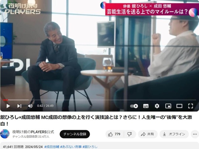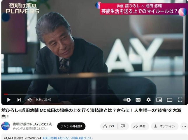 俳優・舘ひろしさん(74)が2024年5月24日、YouTubeチャンネル「夜明け前のPLAYERS公式」に出演し、番組MCを務める経済学者・成田悠輔さん(39)に「説教」をする場面があり、話題になっている。