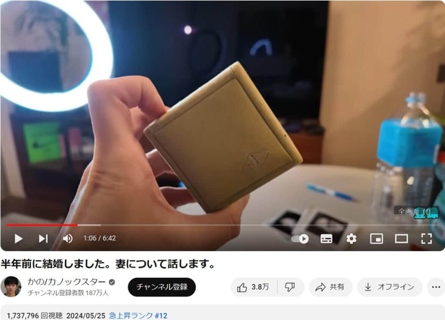 「(結婚の)証拠になるものないかな」と結婚指輪の箱を示した瞬間、机に置かれたエコー写真が写り込んだ。エコー写真は数枚重ねて無造作に置いてある。かのさんは、動画で妻の妊娠に言及したわけではない。ただ、エコー写真が写りこんだことで、それを「におわせた」と受けとめた人も多かったようだ。動画には次のようなコメントが寄せられている。