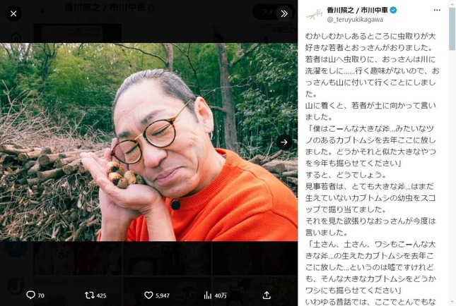 • 香川照之さんのX(@_teruyukikagawa)より