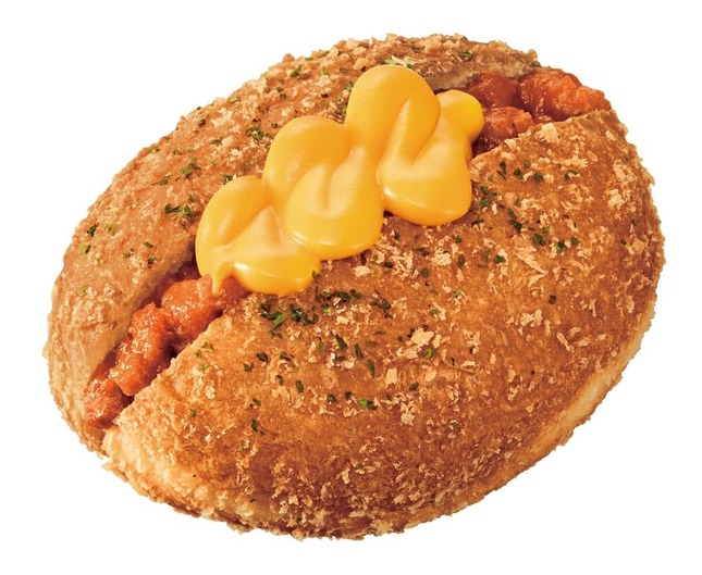 「ザクもっちドッグ カレー」は、まろやかな辛さでなめらかな食感のカレーフィリングを挟み、半熟卵風のスライスタマゴをトッピングした。