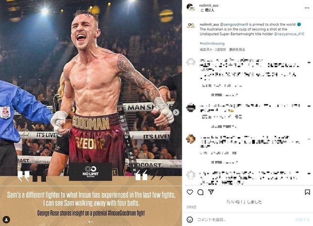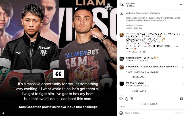 その次の挑戦者として可能性があるのが、WBO・IBF世界同級1位のサム・グッドマン(オーストラリア、25)と、元WBA・IBF同級王者で、現WBA世界同級1位ムロジョン・アフマダリエフ(ウズベキスタン、29)だ。