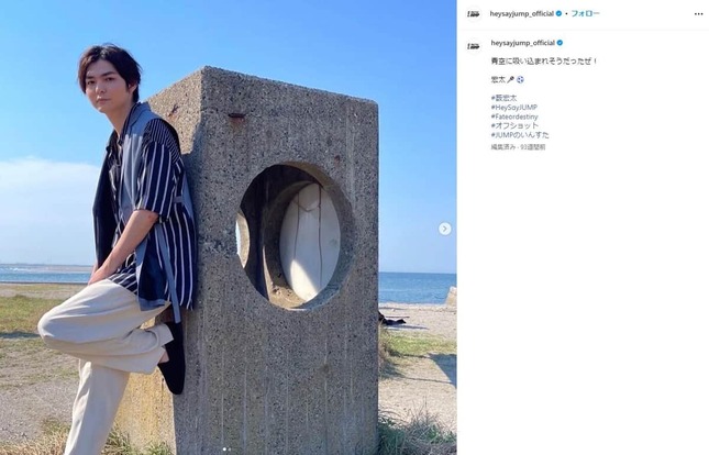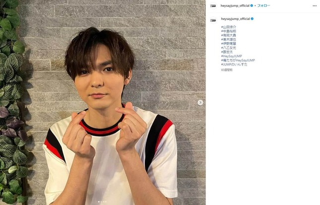薮宏太さん。Hey! Say! JUMPの公式インスタグラム(@heysayjump_official)より