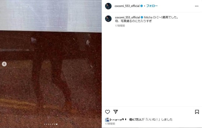 俳優・木村拓哉さん(51)と歌手・工藤静香さん(54)の長女でフルート奏者のCocomiさん(23)が2024年6月2日、インスタグラムで、自身のソロショットに「力入りすぎ」な母が写りこんでいることにツッコミをいれた。